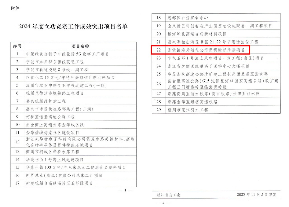 浙能鎮(zhèn)電燃機搬遷改造項目榮膺省立功競賽工作成效突出項目。 王偉 圖